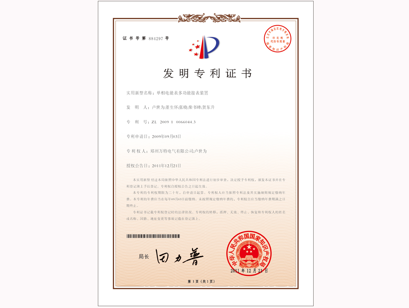 公司發(fā)明專利證書